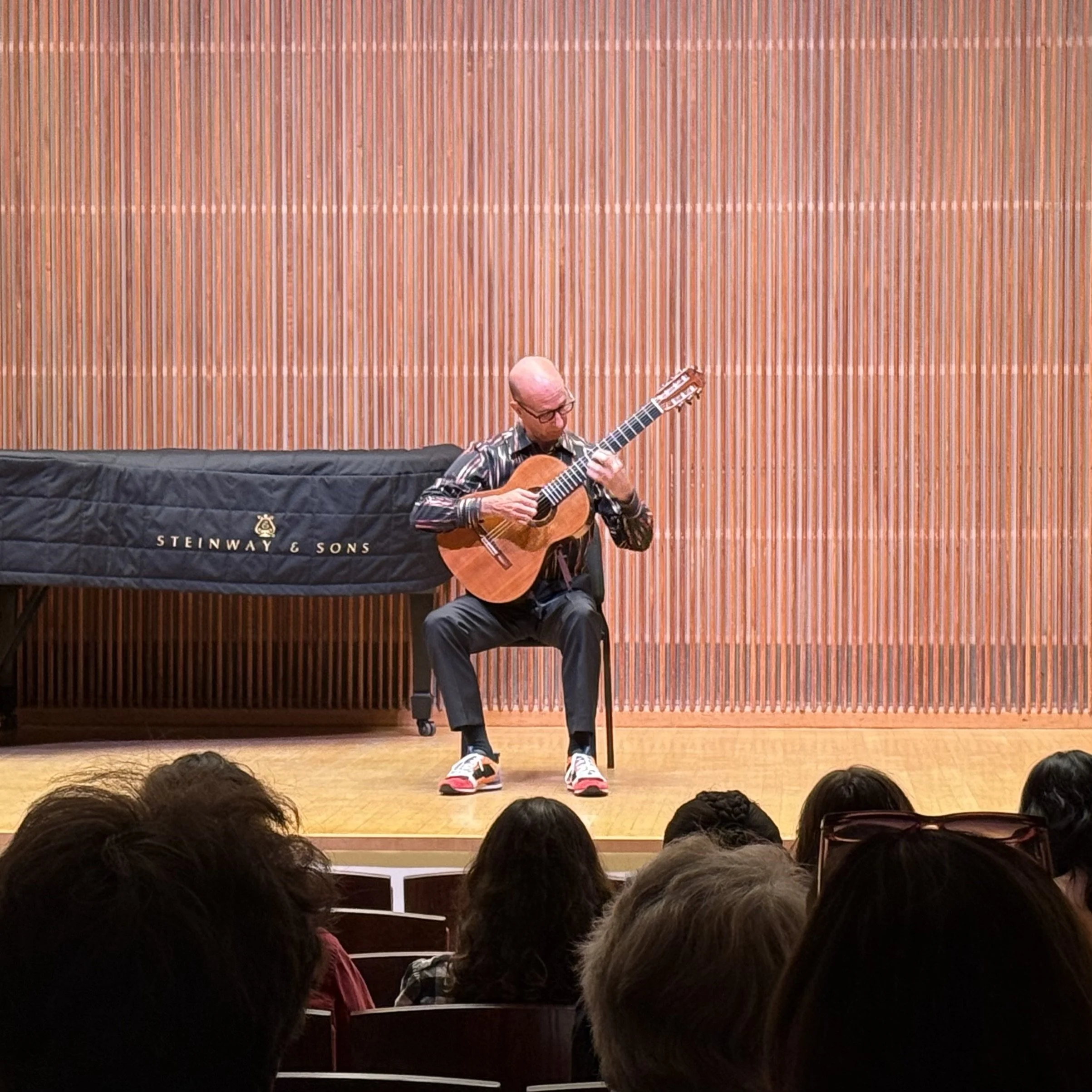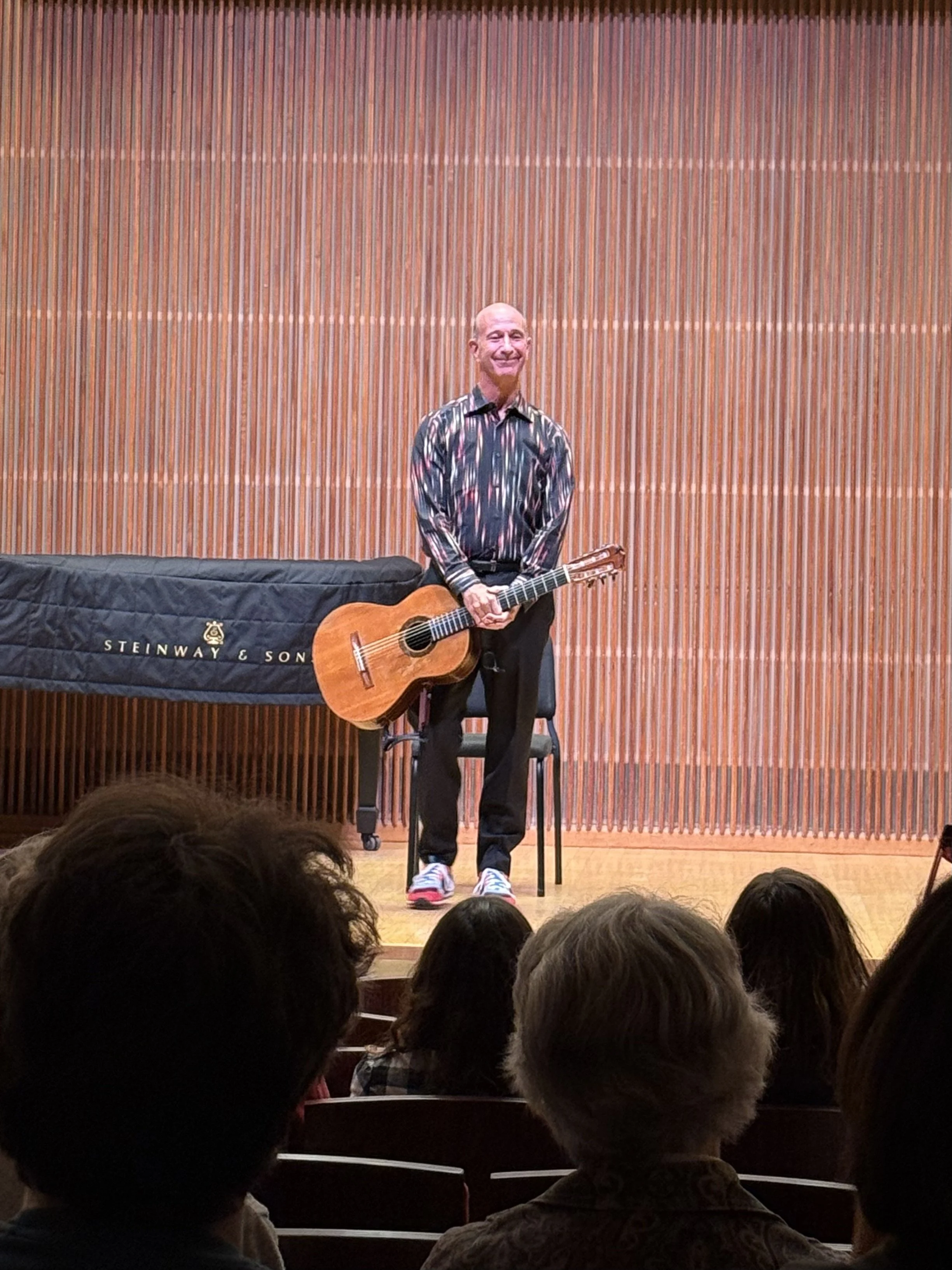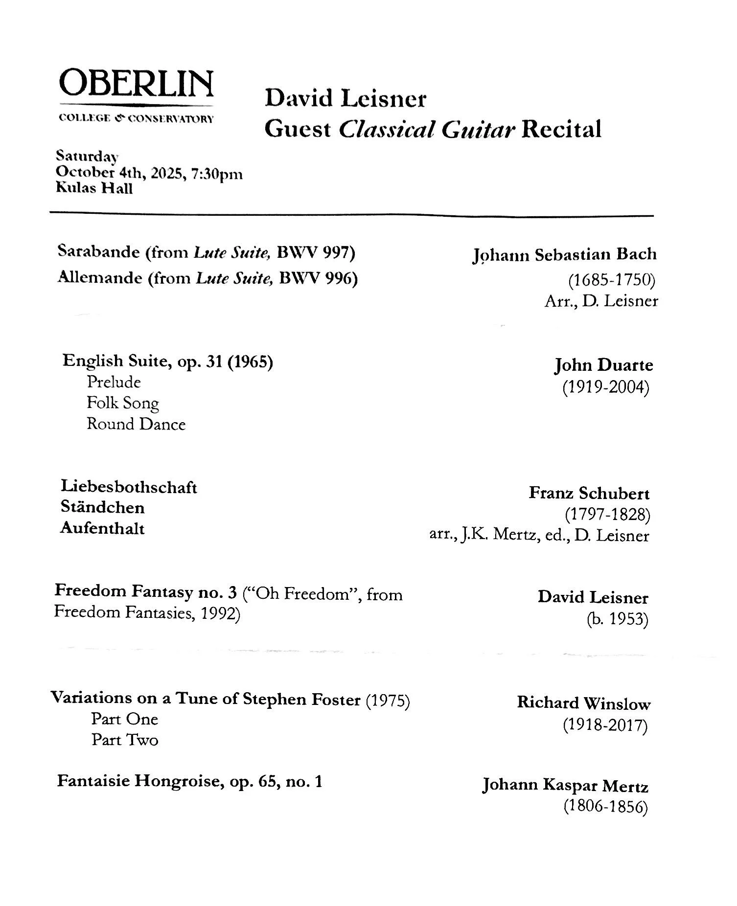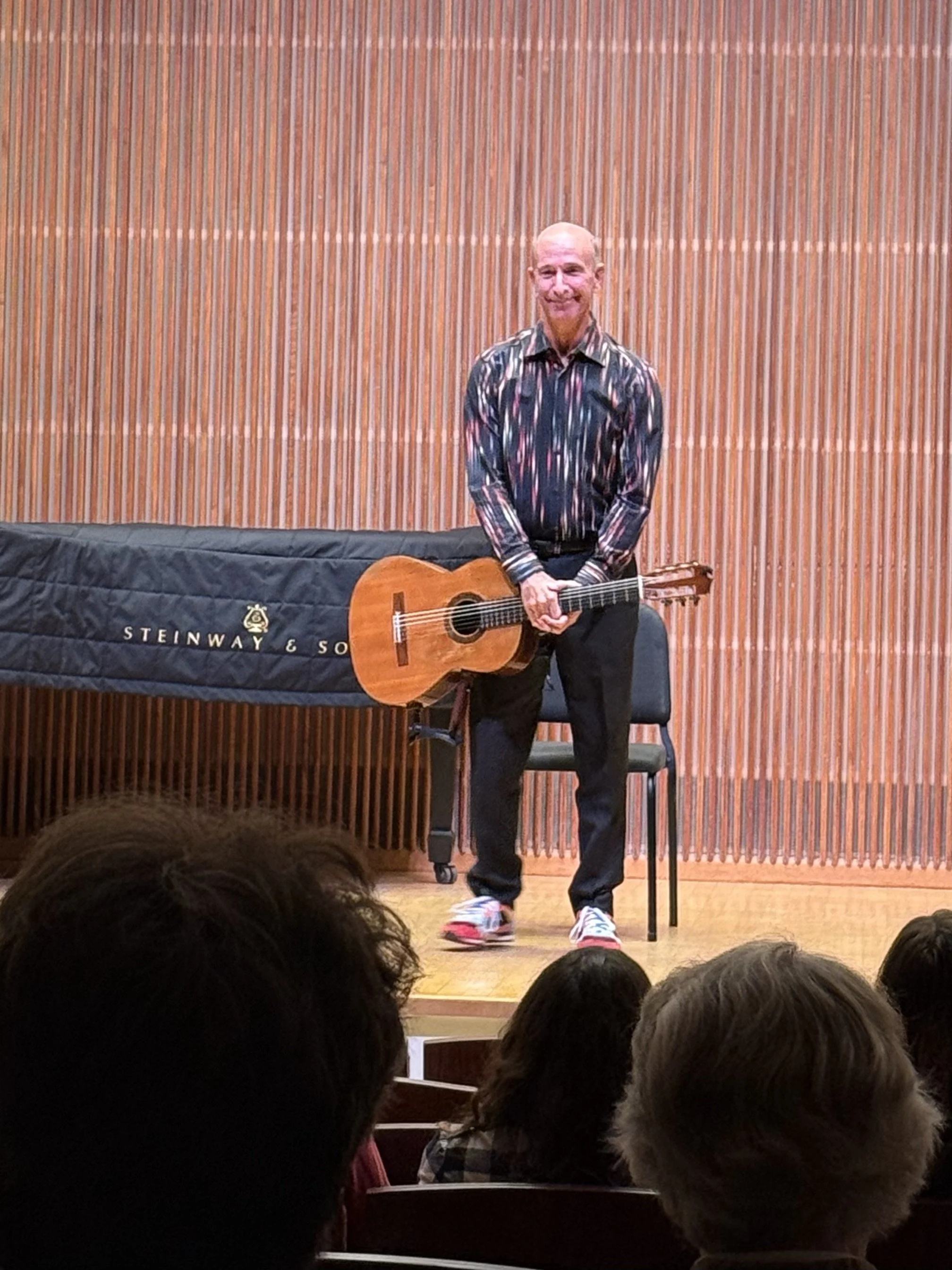 I’d been trying for some time to bring David Leisner to Oberlin and we were fortunate that this season, circumstances finally made it possible. David is a long-time fixture in our world, having been a major teaching presence (both at New England Conservatory and, currently, Manhattan School of Music), a prolific composer, and a concertizing guitarist for many decades. He brought his unique brand of exuberant musicianship and serious pedagogy in a mix that gave the students plenty to work on and think about.