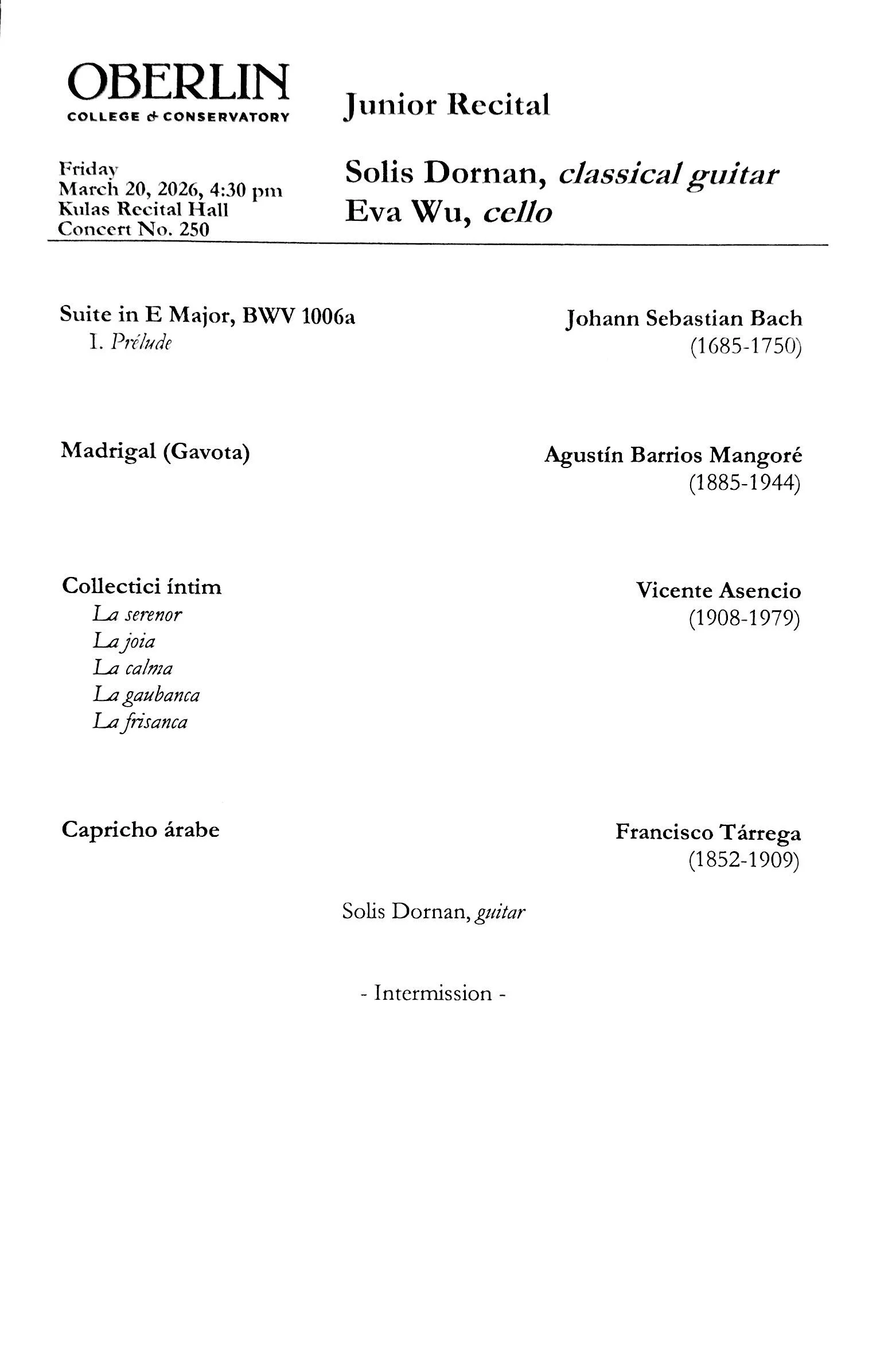 Solis played his third Oberlin recital on Friday this week, in a program he shared with another junior, a cello student. (Throughout the years, I’ve normally had my juniors play full-length Junior Recitals, but as Conservatory policy requires Junior Recitals to be shared—in an effort to maximize space usage—we can only arrange full-length ones in certain venues and at certain times. In this case, Solis needed to accommodate his family’s travel needs, so he went early and played the customary shared program).