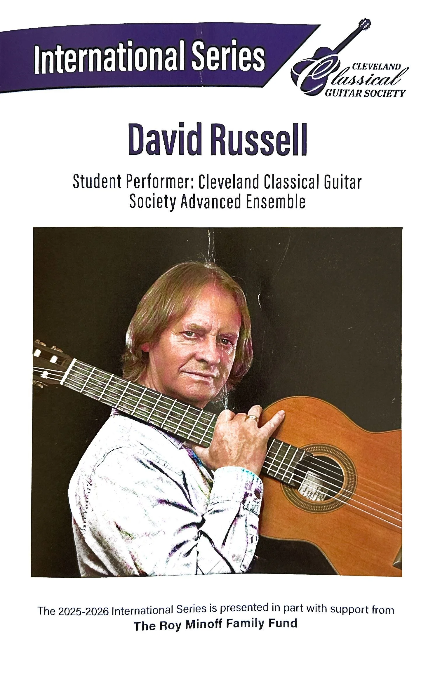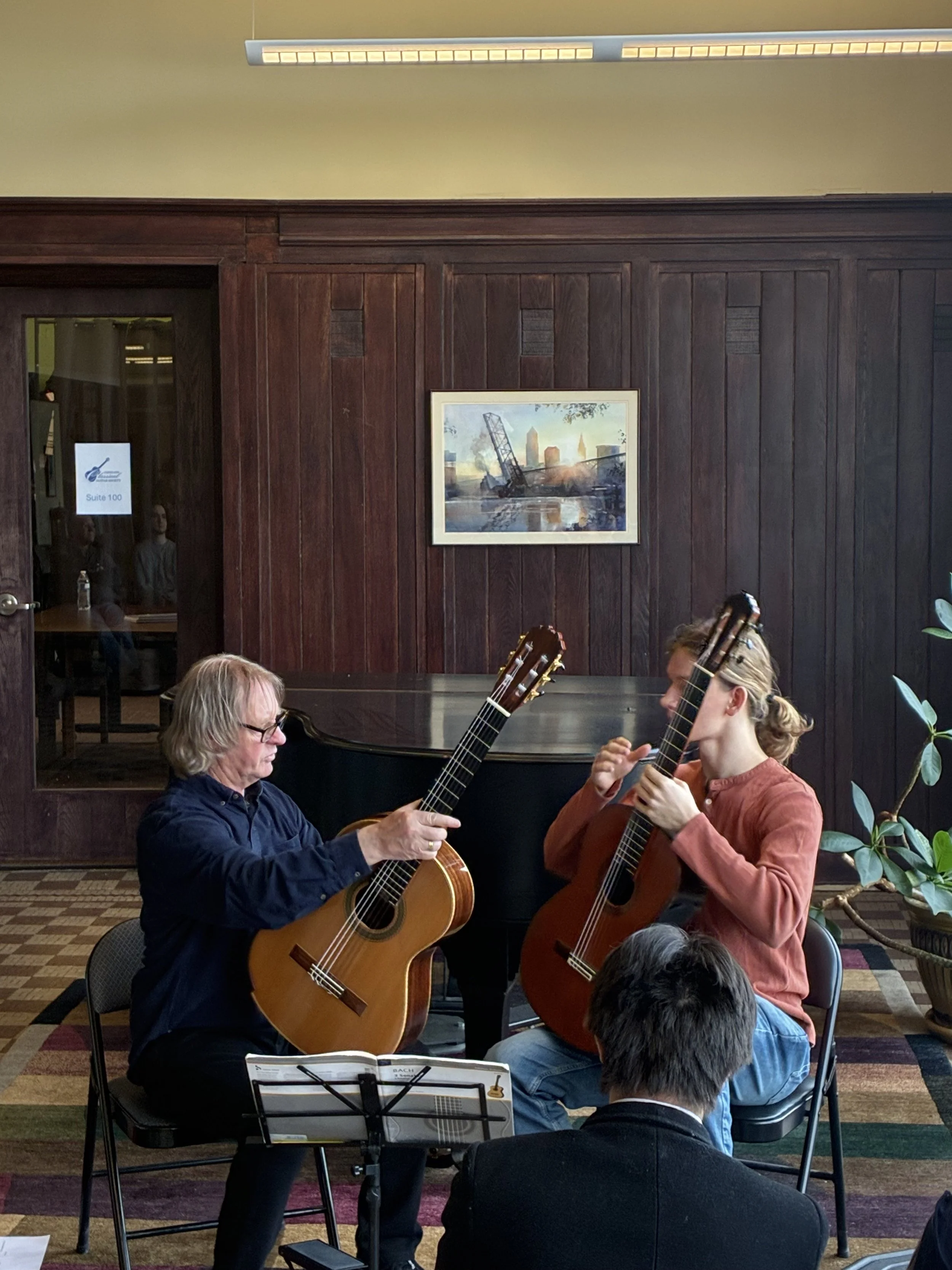 The remarkable Cleveland Classical Guitar Society, Erik Mann, Director, featured David Russell in a return performance last week. As part of his mini-residency, he taught a master class featuring students from nearby programs. Two from Oberlin played, Sam Schollenberger and Aleksandr Lapshin.
