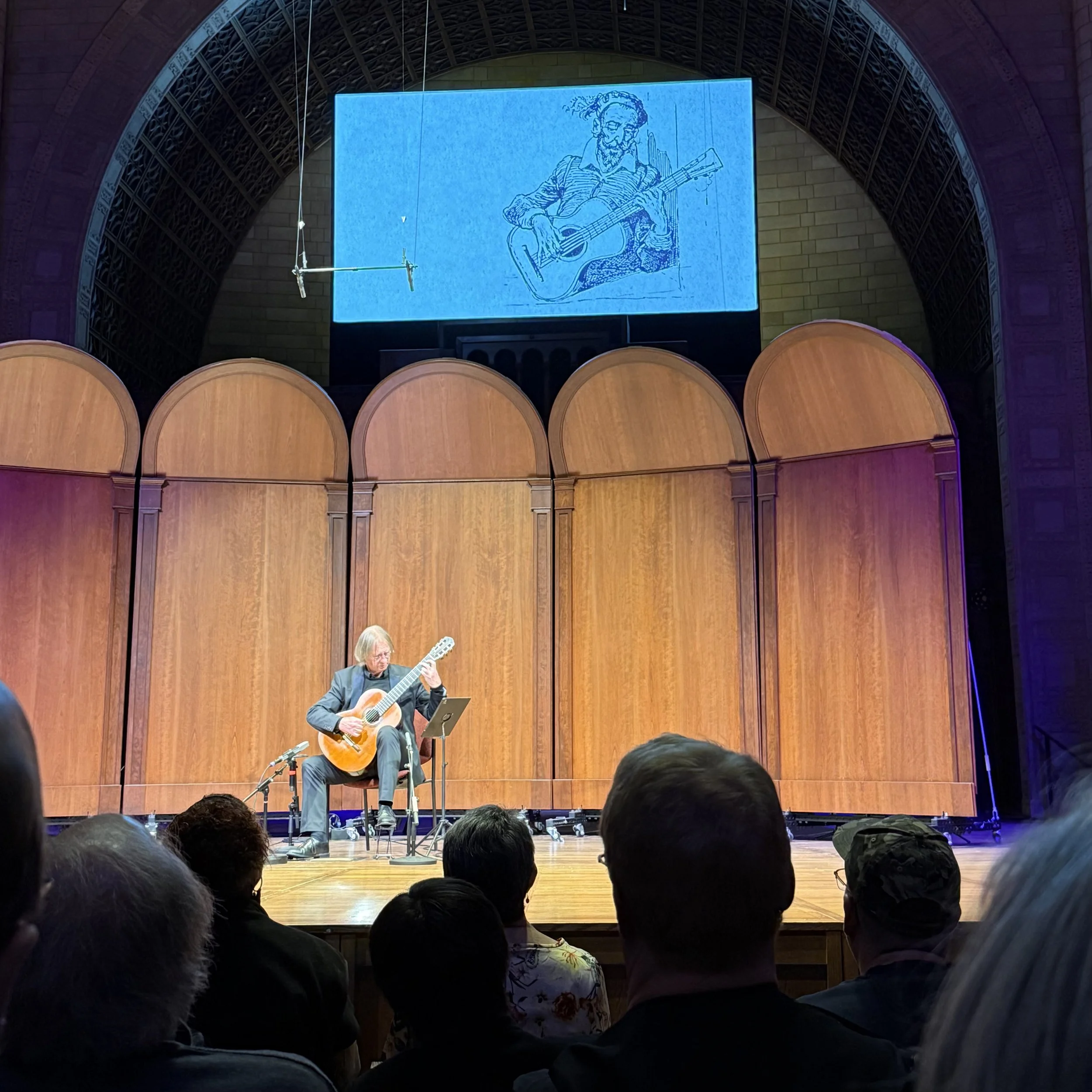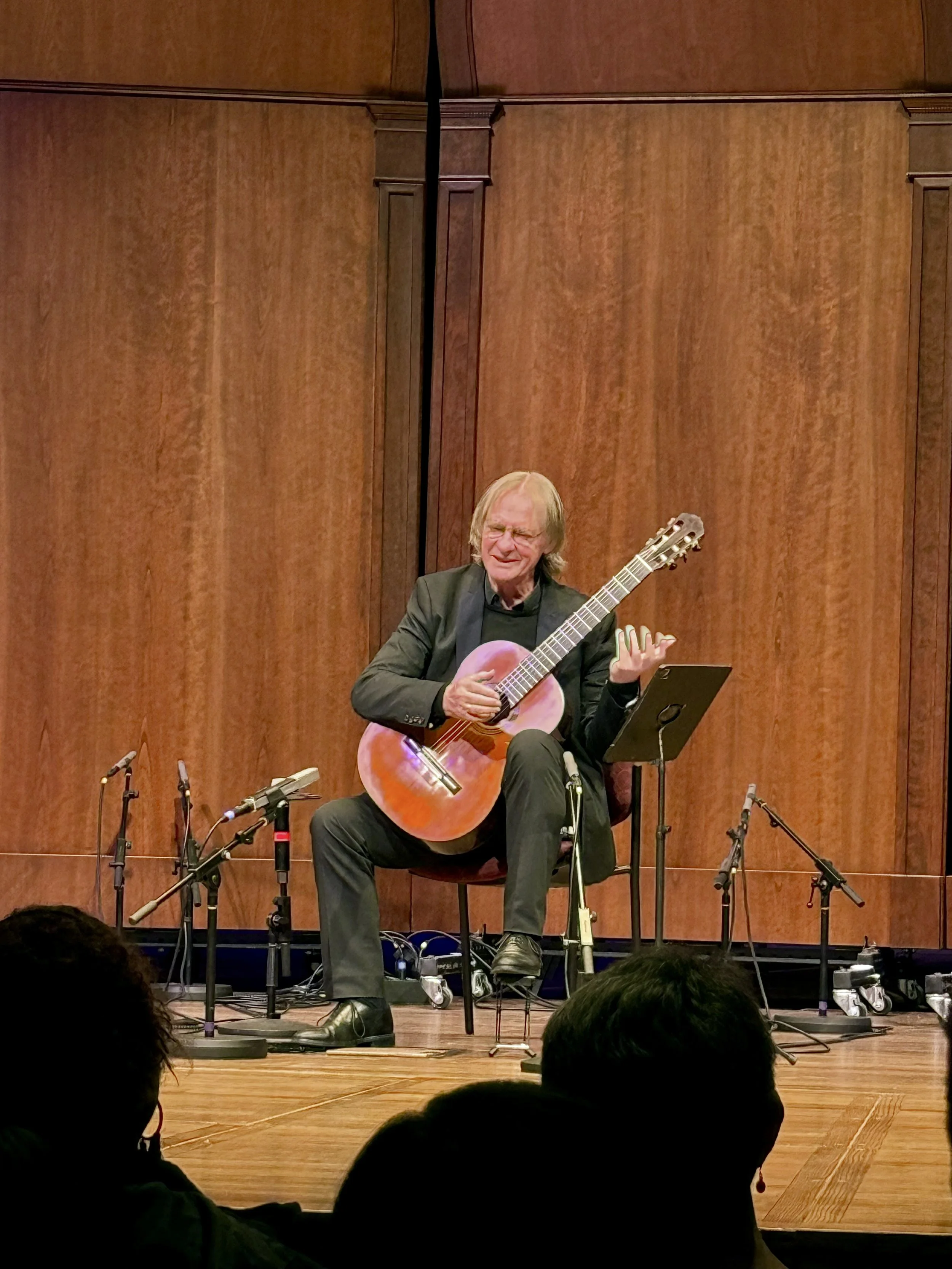 David’s program was his familiar balance of the familiar and the new, a career mission that remains ever-more impressive after his many years. To continue to add new repertoire, whether by unearthing the overlooked, arranging material never before played on guitar, or working with composers on new music, right into your 70’s, is a truly epic feat and one worth celebrating. For this program, he incorporated some less-often heard Albeniz and Bach, and major new works by Goss and Estarellas (full program included at the end of the post).