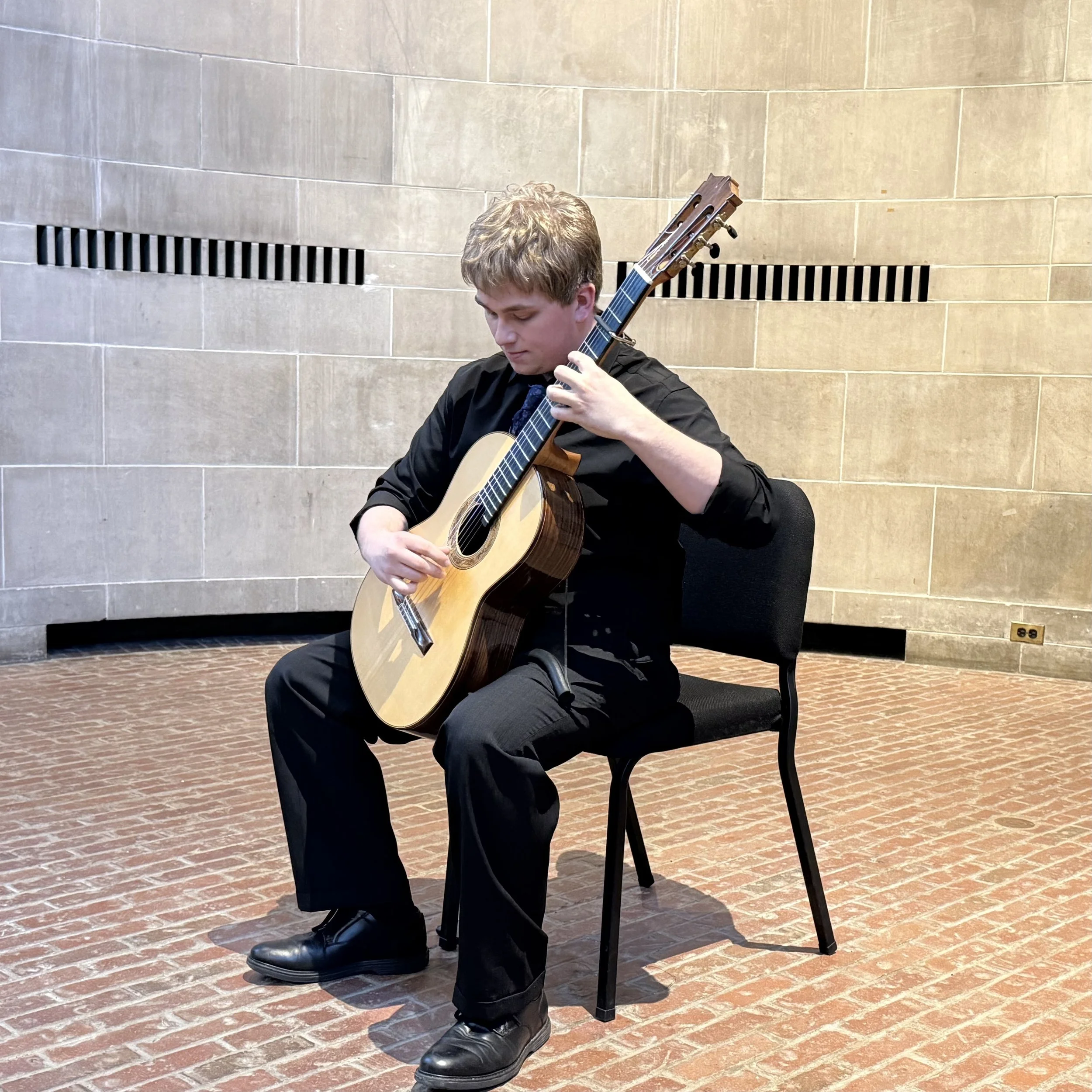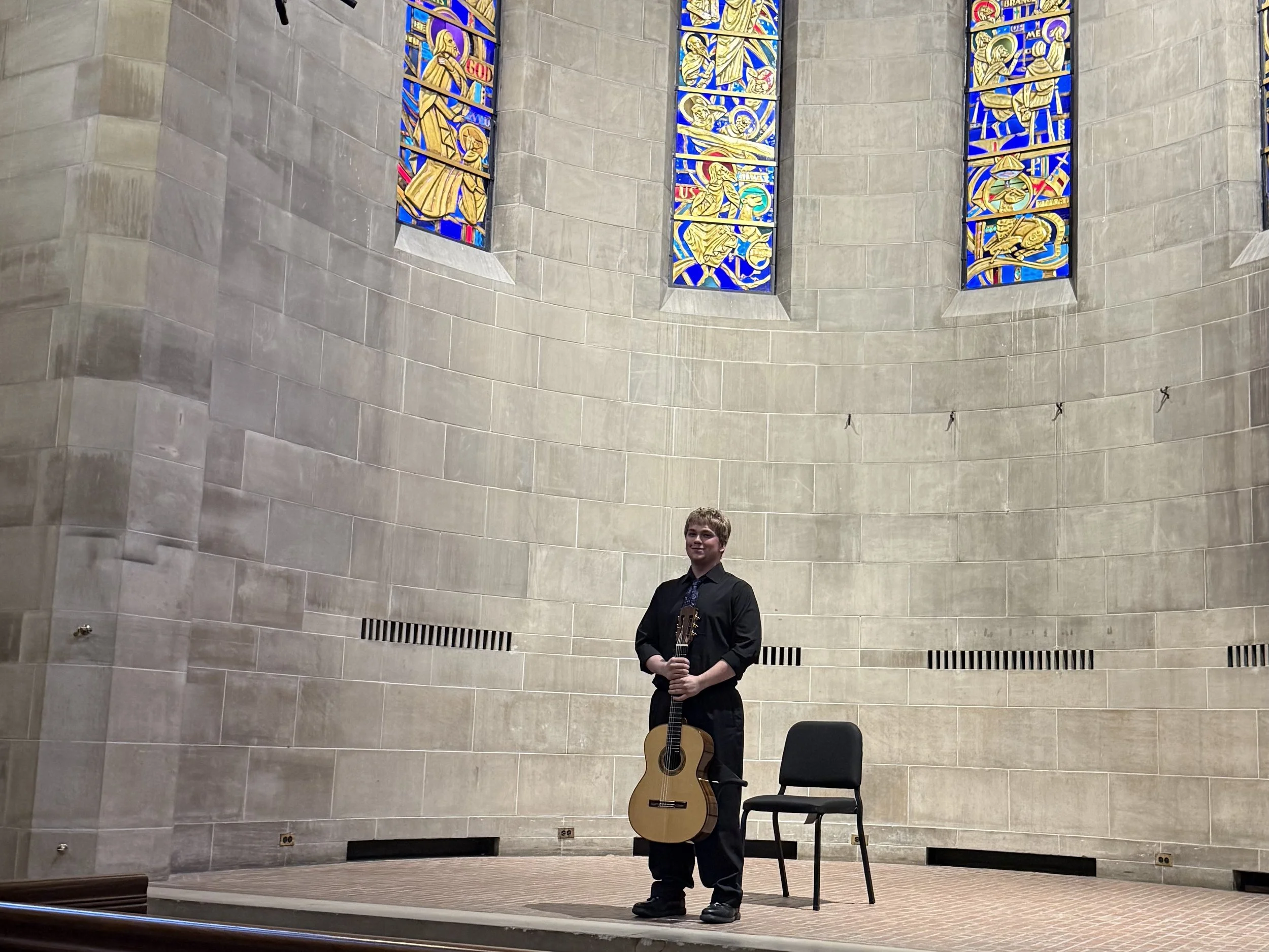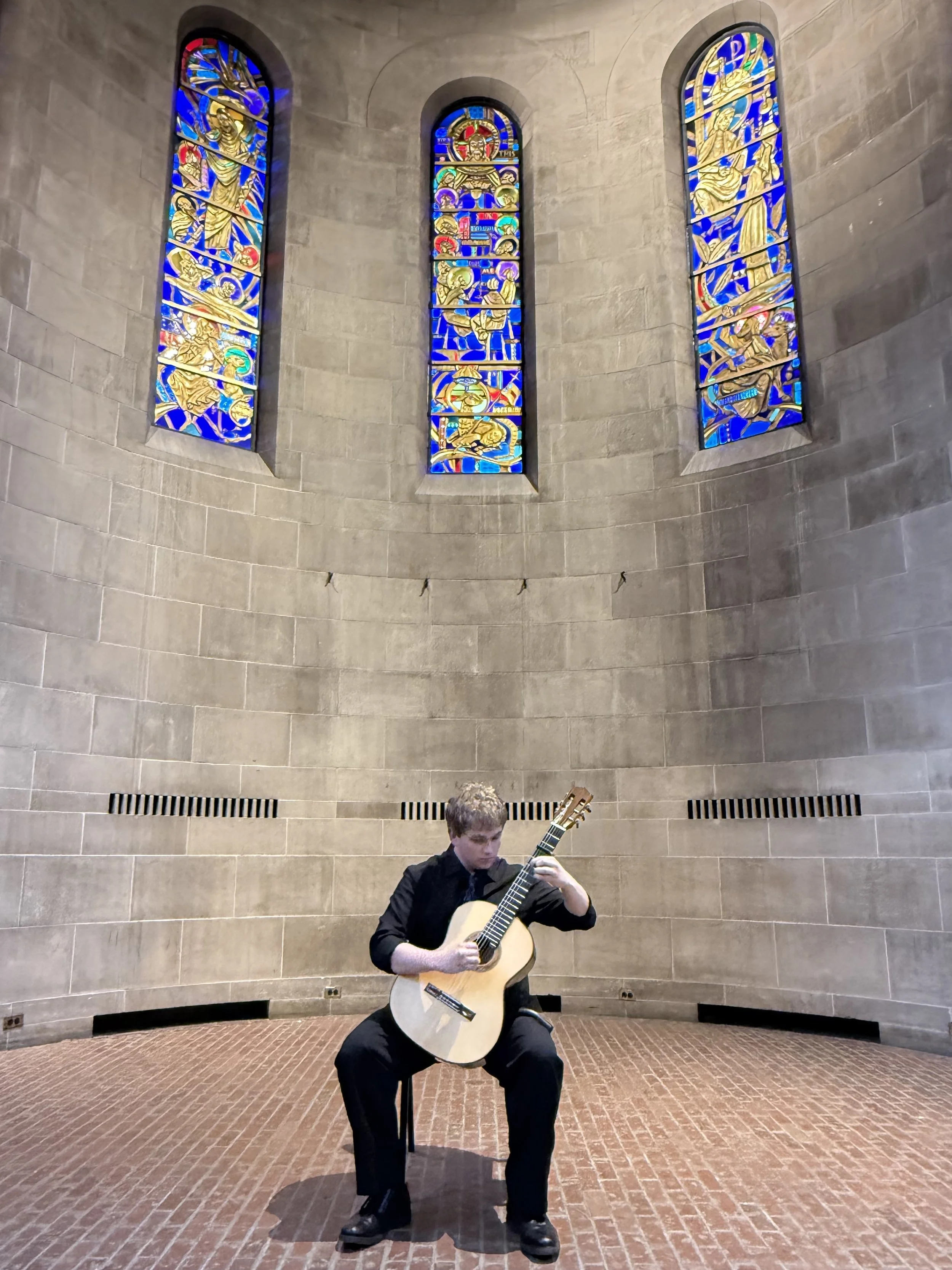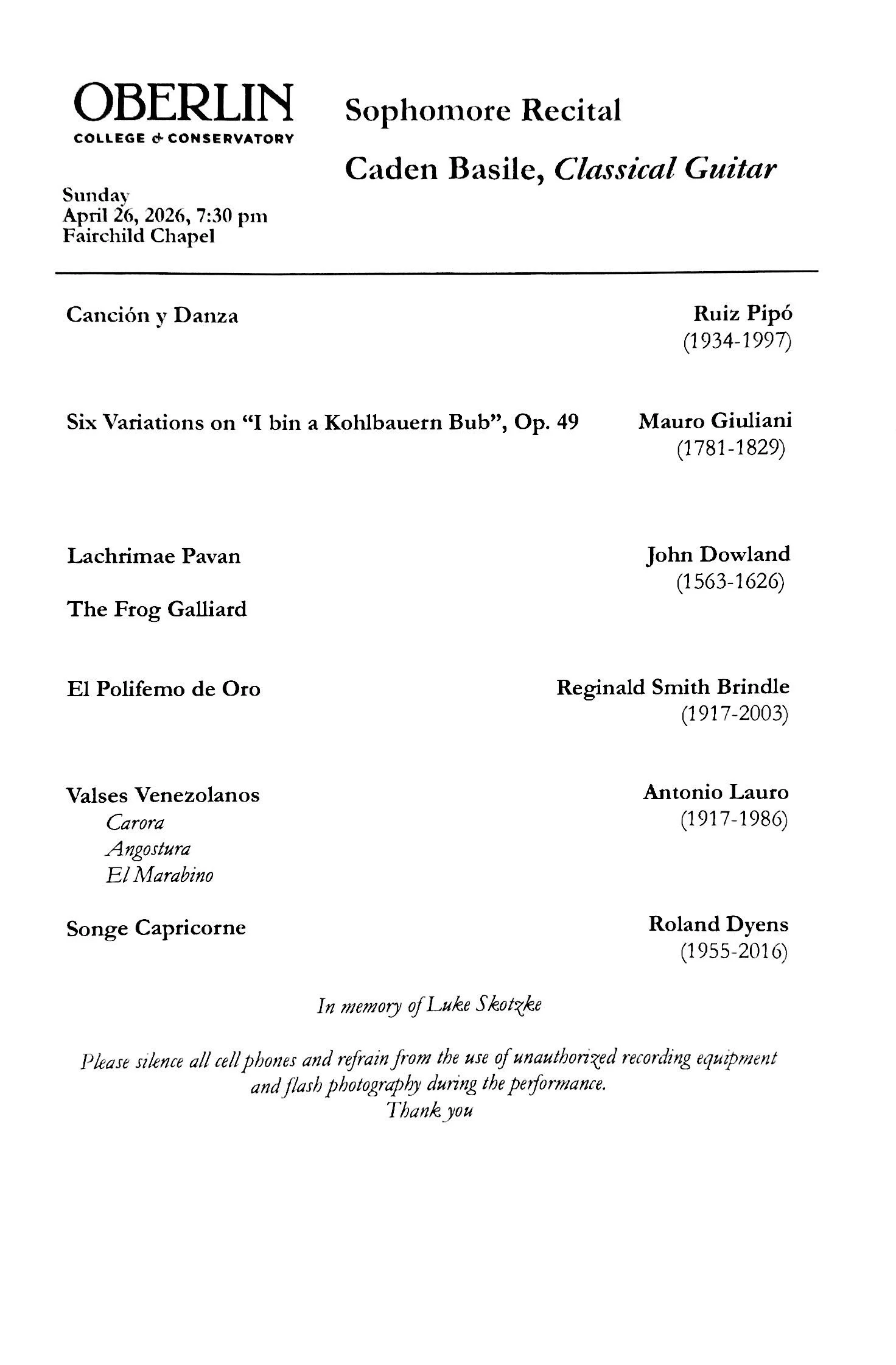Caden assembled an impressive crowd for his second full solo recital at Oberlin. His program, varied as usual, but with some unusual repertoire bits incorporated, landed beautifully in the ambient space of Fairchild Chapel. He began with one if my favorites, Ruiz-Pipo’s Canción y Danza No 1.